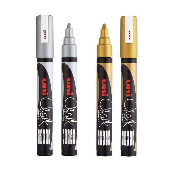 - Kreidinis žymeklis UNI Chalk, aukso spalvos