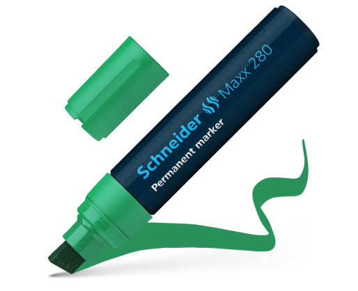 Permanentinis žymeklis „Schneider 280" Kirsta galvute 4-12 mm brėžio storis. Neturi aštraus kvapo, greit džiūstantis, neblunkantis, vandeniui ir valymui atsparus rašalas. Papildymui naudojami 650 papildai.Prekės parametrai