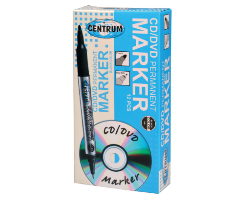 Permanentinis žymeklis CENTRUM CD/DVD, dvigubas 0.6mm/2.0mm, juodas