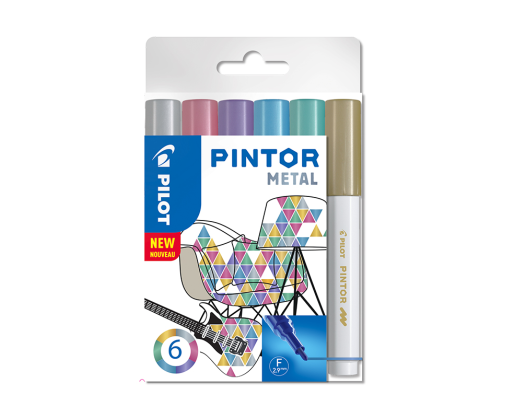 - Permanentinis žymeklis PILOT PINTOR METALLIC 1.0mm, apvali galvutė, 6 sp. komplektas
