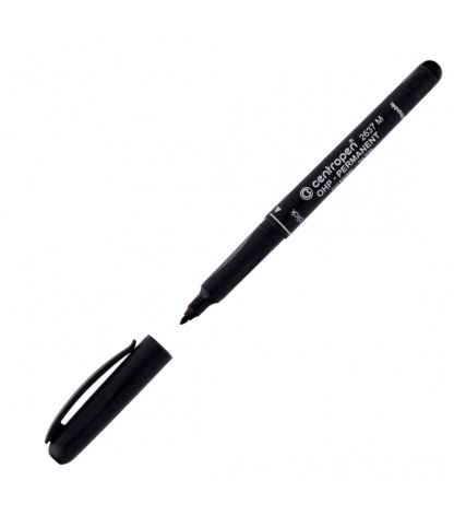 Permanentinis žymeklis apvalia galvute; linijos plotis 1-2mm, vandeniui atsparus, greitai džiūsta, plastikiniu korpusu.