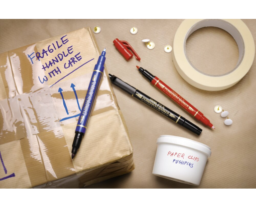 „Pentel Pen Twin Tip“ yra nuolatinis universalus žymeklis, ypač tinkamas naudoti ant plastiko. Pirmasis iš dviejų galiukų yra plonas antgalis su nežymiu spyruokliniu veikimu, kuris leidžia naudotojams daryti didesnį spaudimą, kad žymėjimo metu būtų galima pereiti nuo ypač plonos linijos į ploną. Vidutinio dydžio pluošto antgalis kitame rašiklio gale užtikrina storesnį linijos plotį, kai tikslumas nėra toks svarbus.Pagrindinės funkcijos: