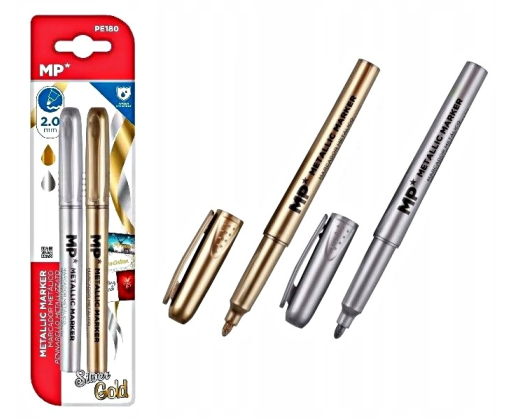 Žymekliai MP 2vnt.PE180 aukso ir sidabro sp., 2mm brėžis