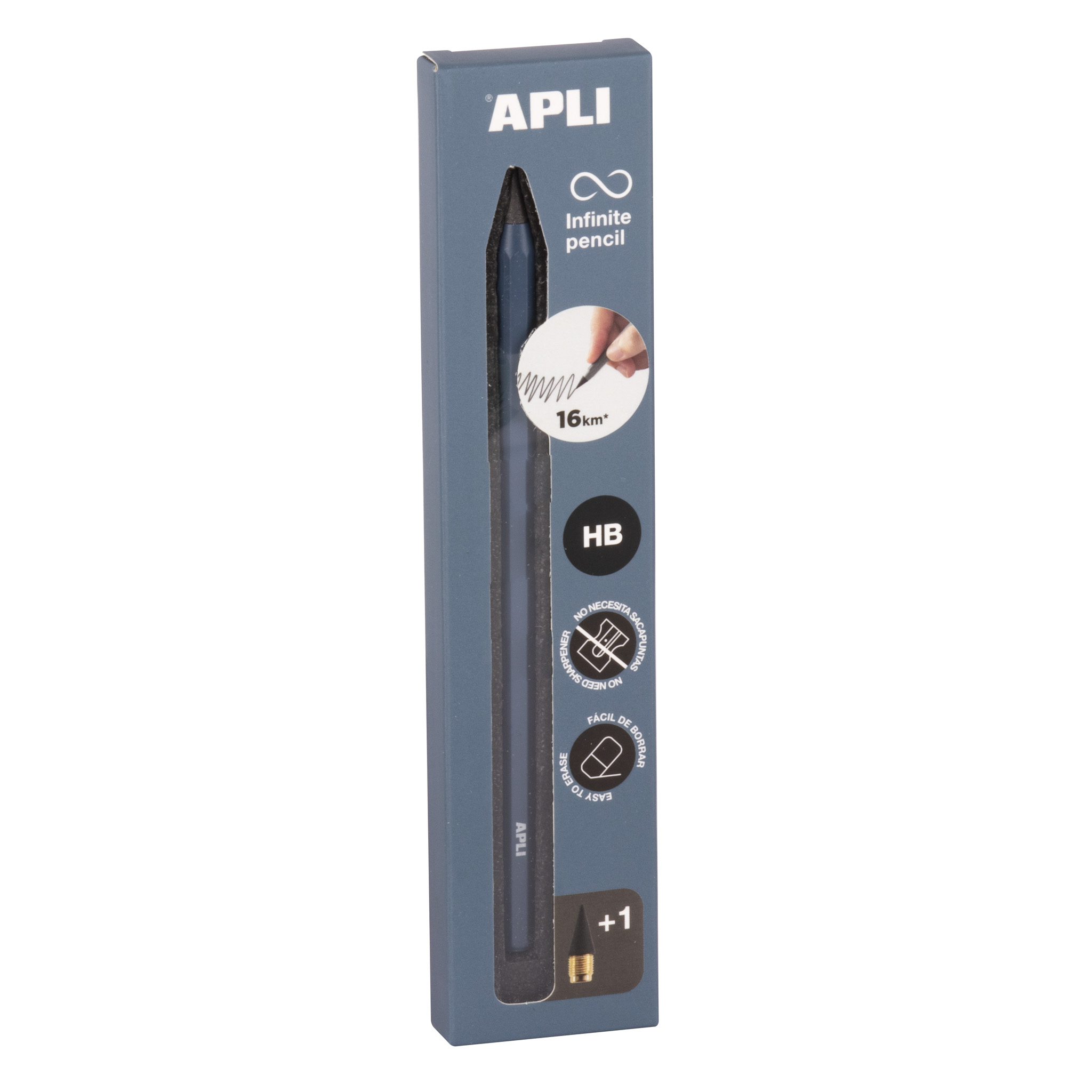 - Nesibaigiantis pieštukas Apli, HB, mėlynos spalvos