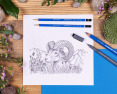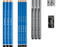 Piešimo rinkinys. Kartoninė dėžutė, kurioje yra 7 įvairių laipsnių piešimo pieštukai, 3 įvairaus pločio pigmentiniai įdėklai, 1 trintukas ir 1 metalinis dvigubas drožtukas.Prekės parametrai