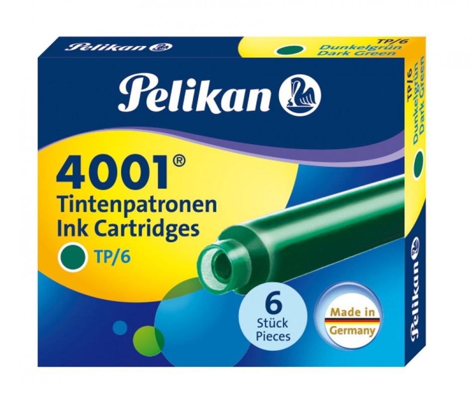 Rašalo kapsulės Pelikan, žalios trumpos, 6vnt