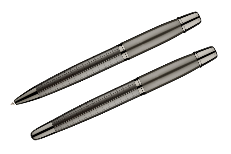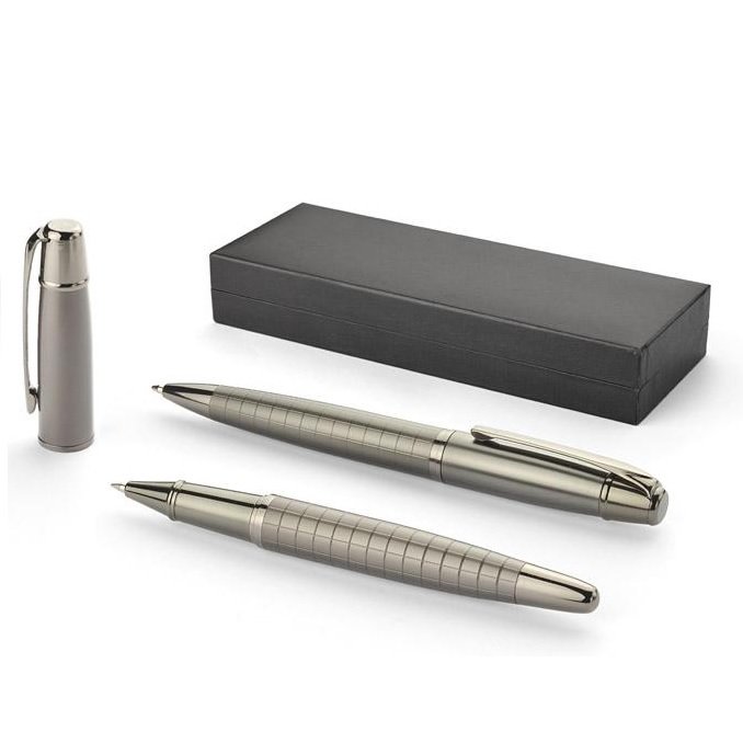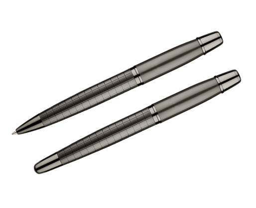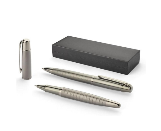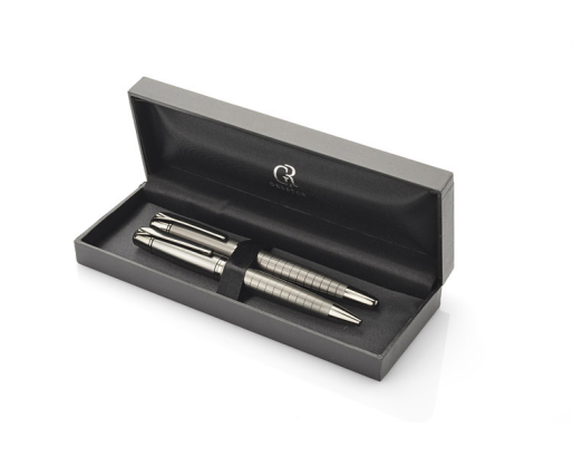 Rinkinys OREGON BC19582. Rinkinį sudaro tušinukas ir rašiklis dėžutėje. Rašymo priemonės pagamintos iš metalo.