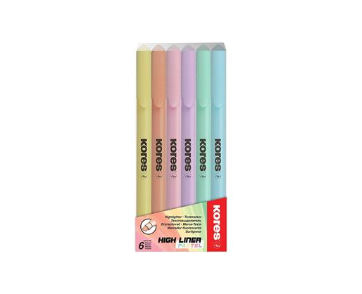 Teksto žymekliai KORES HIGH LINER PASTEL 6 spalvų rinkinys