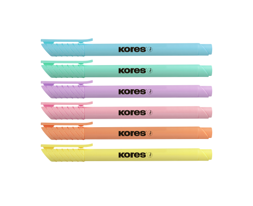 - Teksto žymekliai KORES HIGH LINER PASTEL 6 spalvų rinkinys