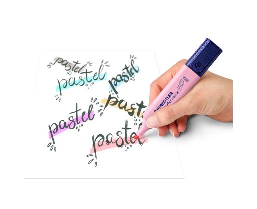 Žymeklis su dideliu rašalo rezervuaru ypač ilgam naudojimui. Idealiai tinka žymėti tekstą ir spalvinti didesnes sritis. Vandens dažai, greitai džiūstantis. Įsukamas dangtelis lengvai atidaromas, garantuoja ilgą tarnavimo laiką. Itin minkštas antgalis apie 1 - 5 mm. 4 ryškios pastelinės spalvos.