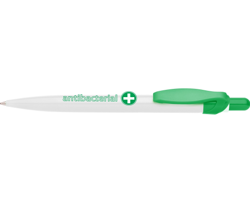 Antibakterinis automatinis tušinukas, pagamintas su sidabro biocido priedu, užtikrinančiu antibakterinę apsaugą. Ilgalaikis antibakterinis poveikis. Linijos storis: 0,8 mm, Rašymo ilgis: 2500m. Galimi baltos / žalios spalvos deriniai.