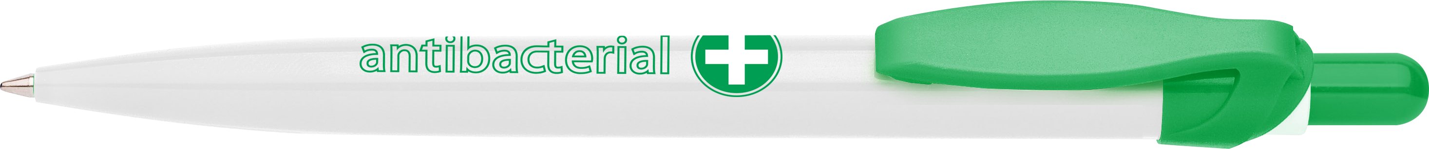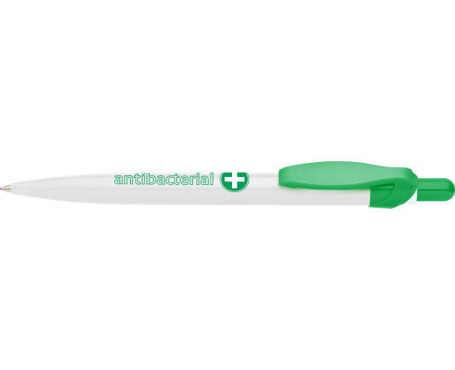Antibakterinis automatinis tušinukas, pagamintas su sidabro biocido priedu, užtikrinančiu antibakterinę apsaugą. Ilgalaikis antibakterinis poveikis. Linijos storis: 0,8 mm, Rašymo ilgis: 2500m. Galimi baltos / žalios spalvos deriniai.