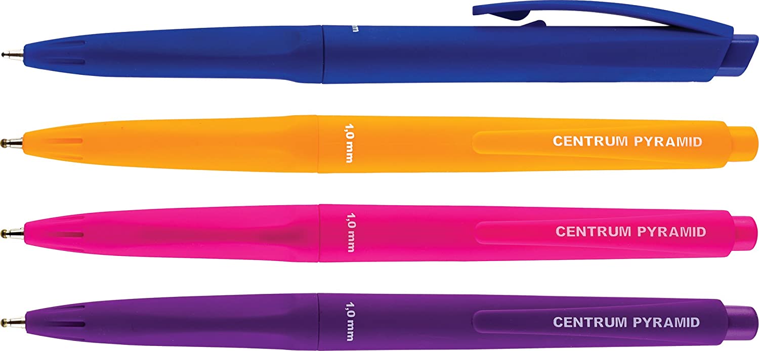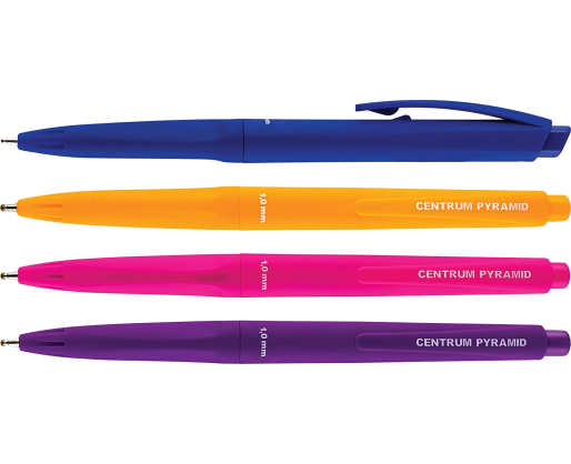 - Automatinis tušinukas CENTRUM PYRAMID 0,7 mm, įvairių spalvų korpusas, rašo mėlynai