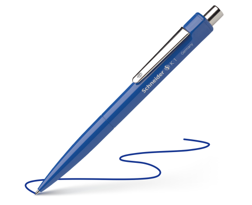 Tušinukas Schneider K1. Mėlynos spalvos korpusas. Korpuso spalva atitinka rašalo spalvą. Su metalinė įsegėle. Vandeniui atsparus, mėlynos spalvos tušas. Atitinka ISO 12757-2 G1 standartą. Keičiama šerdelė EXPRESS 225 ar 75 serijos. Brėžio storis 1.0 mm.