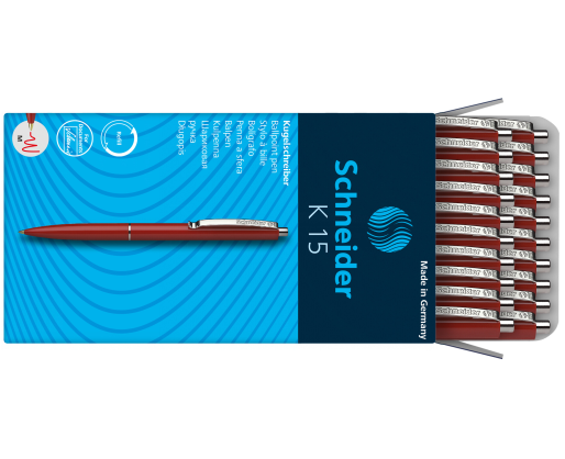 - Automatinis tušinukas SCHNEIDER K15, 0,7 mm., raudonas korpusas ir tušas