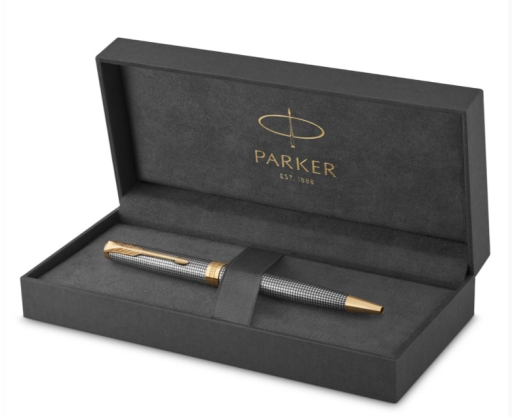Komplektuojamas su juodos spalvos Parker šerdele ir dovanų dėžute.