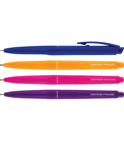 Į komplektą įeina mėlynas rašiklis, raudonas rašiklis ir ilgaamžis pieštukas.
