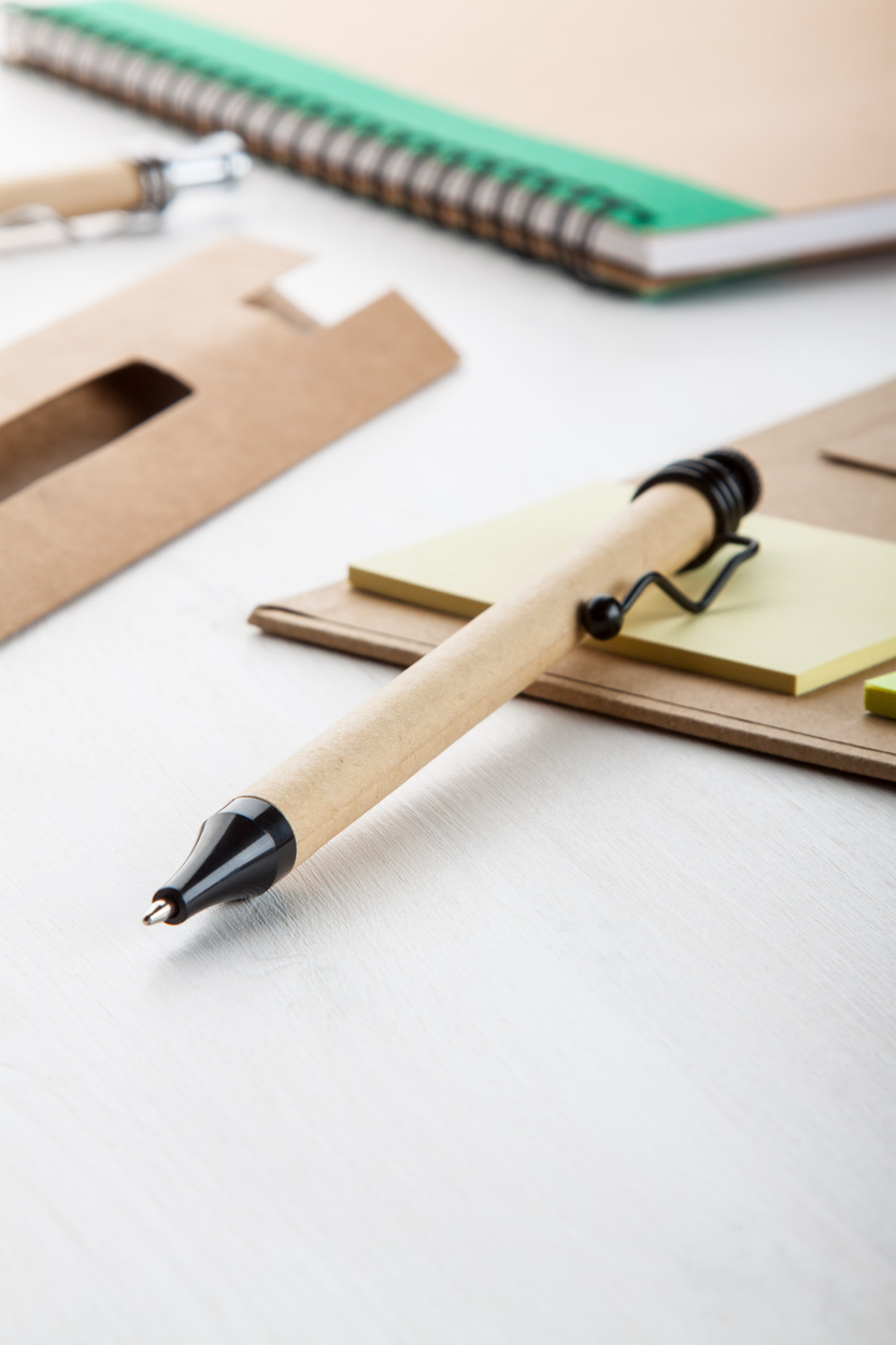 Automatinis tušinukas Natura. Tušinuko korpusas pagamintas iš perdirbto popieriaus. Mėlynas rašalas.