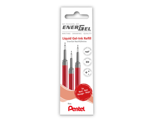 Gelinės šerdelės PENTEL Energel F, 3 vnt., raudonos sp.
