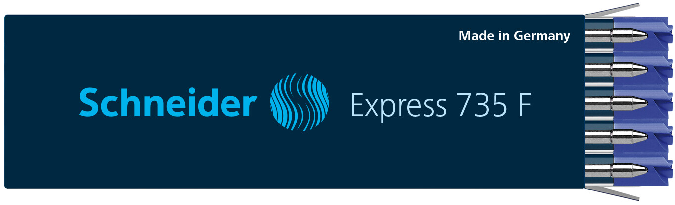 Šerdelė Schneider EXPRESS 735. Tinka tušinukui Sharky. ISO formatas - G2. Metalinė. Mėlynos spalvos tušas. Brėžio storis 0.7 mm.Prekės parametrai