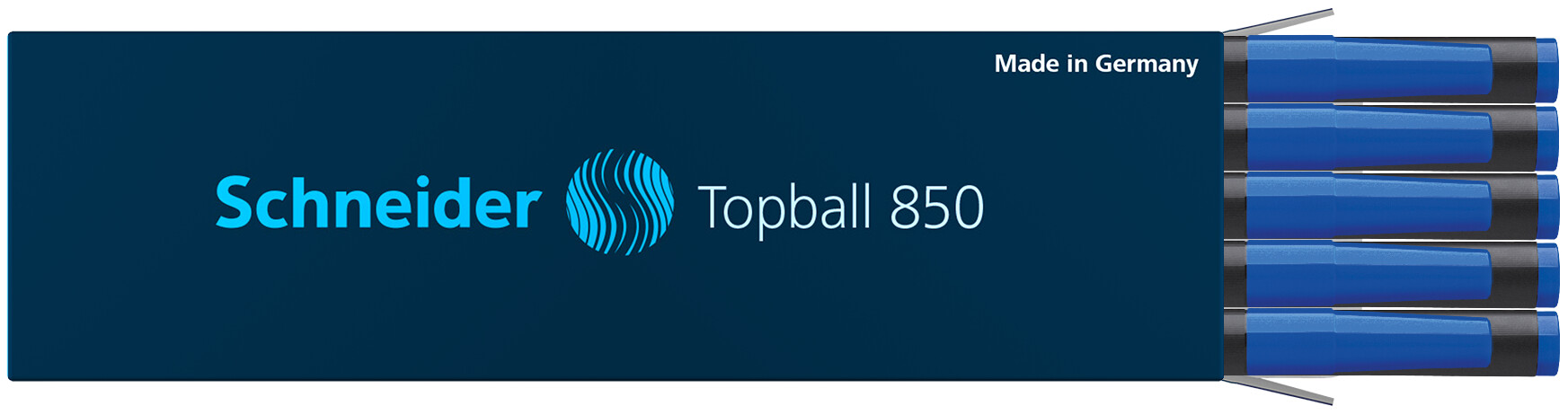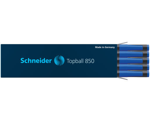 Tinka rašikliui Schneider Topball 811 ir kitiems Europinio standarto rašikliams. Mėlynos spalvos rašalas. Brėžio storis 0,5 mm. Pakuotėje 10 vnt.