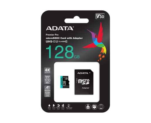 - ADATA Premier Pro UHS-I U3 128 GB, micro SDXC, Flash memory class 10, with Adapter 254989