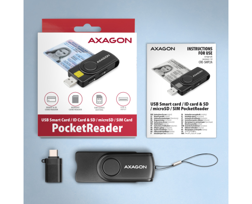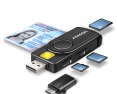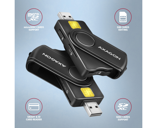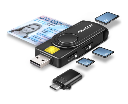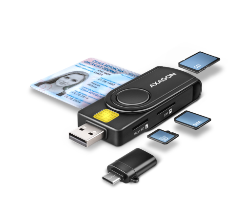 - AXAGON Compact travel USB-A + USB-C contact Smart/ID card and SD/microSD/SIM card reade...