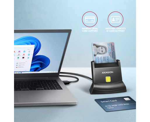 - AXAGON Universal desktop USB contact Smart card/ID card reader with long, USB-A cable |...