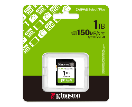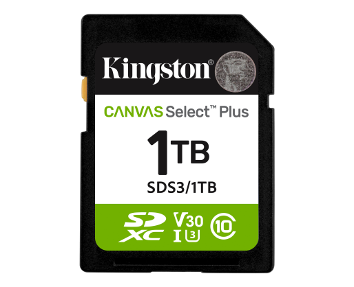 - Kingston Canvas Select Plus | 1000 GB | SD | Flash memory class Class 10, UHS-I, U1/U3,...