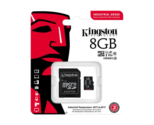 Kingston | UHS-I | 8 GB | microSDHC/SDXC Industrial Card | Flash memory class Class 10, UHS-I, U3, V30, A1 | SD Adapter 345736
