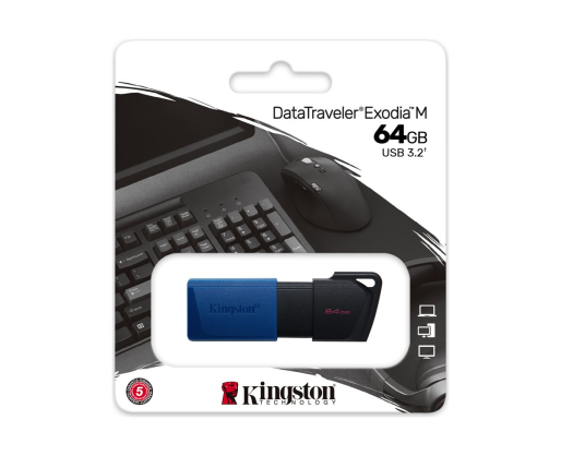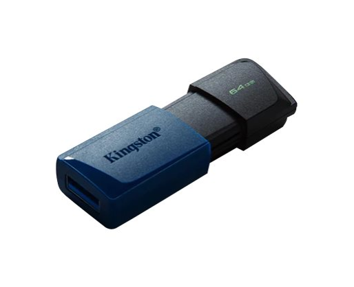 - Kingston USB 3.2 Flash Drive DataTraveler Exodia M 64 GB, USB 3.2, Black/Blue 368926
