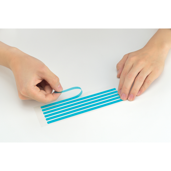 Komplekte yra 8 tvirtinimo laikikliai (6 trumpi ir 2 ilgi), 12 lipnių juostelių ir valymo šluostė.