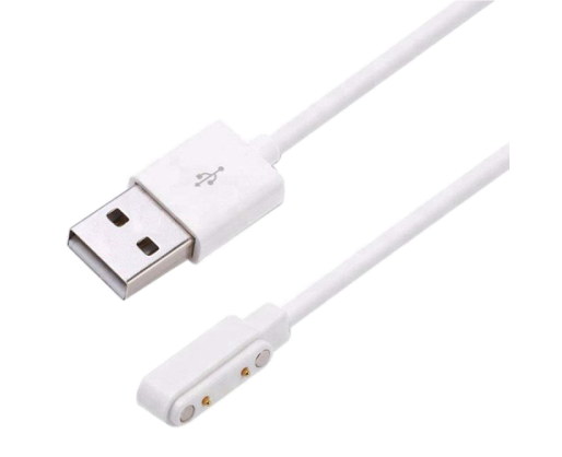 Magnetinis įkroviklis skirtas įkrauti Q55A arba Q112A modelio išmanųjį GPS laikrodį vaikams, USB sąsajos, su 50cm ilgio laidu, baltos spalvos.