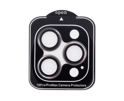 Apsauginis grūdintas stiklas juodais rėmeliais skirtas Apple iPhone 15 Pro/ 15 Pro Max kamerų lęšiams. Pagaminti iš grūdinto stiklo ir siekiantys 9 balų kietumą pagal Moso skalę, skirti telefono kamerų apsaugai nuo mechaninių pažeidimų, tokių kaip sutrenkimai ar aštrių daiktų paliekami įbrėžimai. Stikliukai metaliniais rėmeliais pilnai apgaubia kameros lęšius.Ypatybės:
