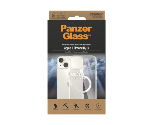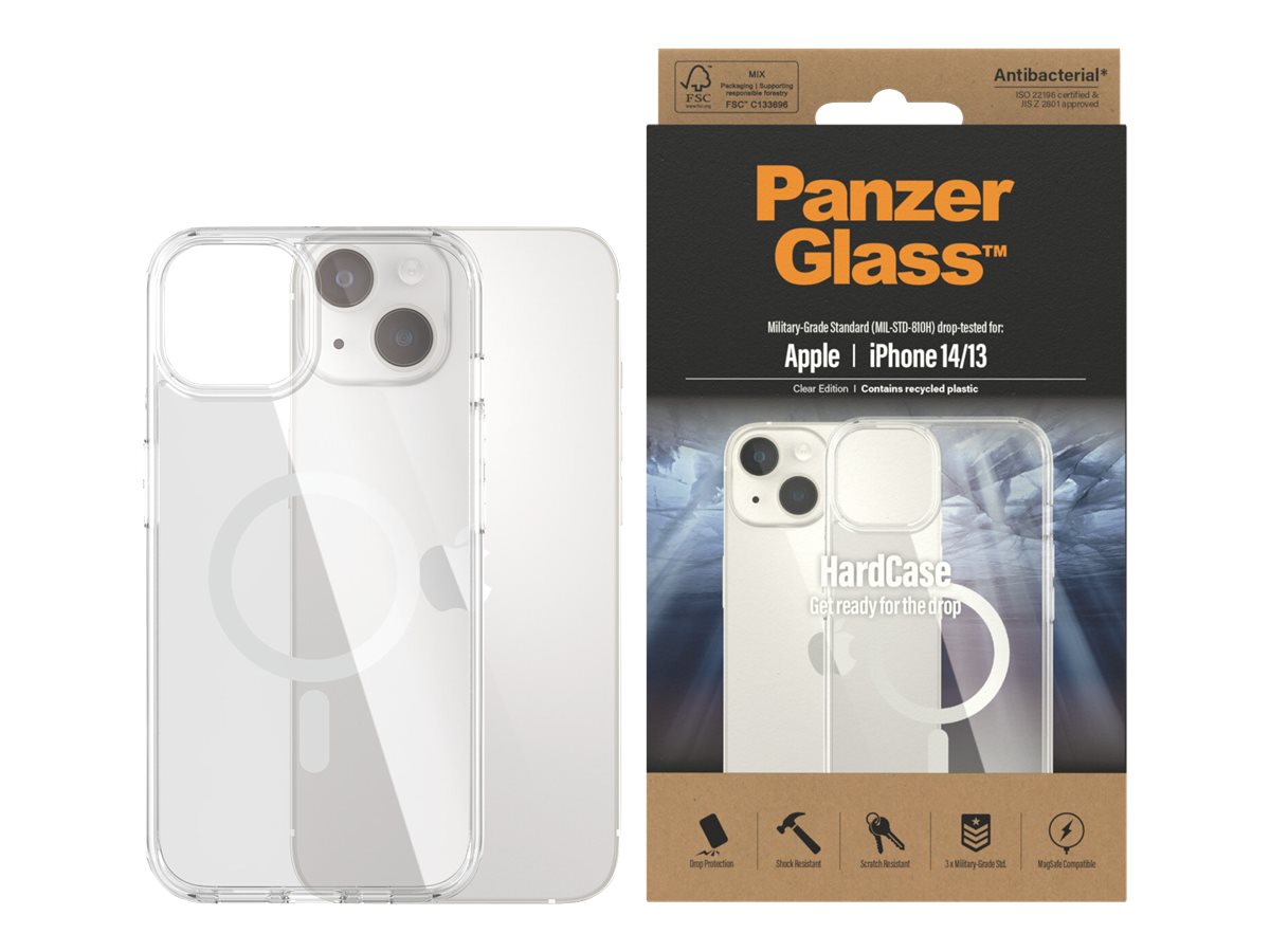PanzerGlass | HardCase MagSafe Compatible | Back protection | Apple | iPhone 14/13 | 100% Recycled Polyurethane (TPU) | Clear | MagSafe compatible; Military Grade Standard; 100% recycled frame material 377185