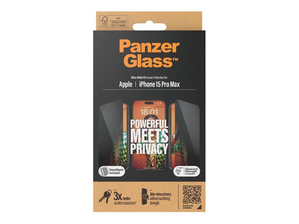 - PanzerGlass Privacy Screen Protector iPhone 15 Pro Max, Ultra-Wide Fit W. Easyaligner 4...