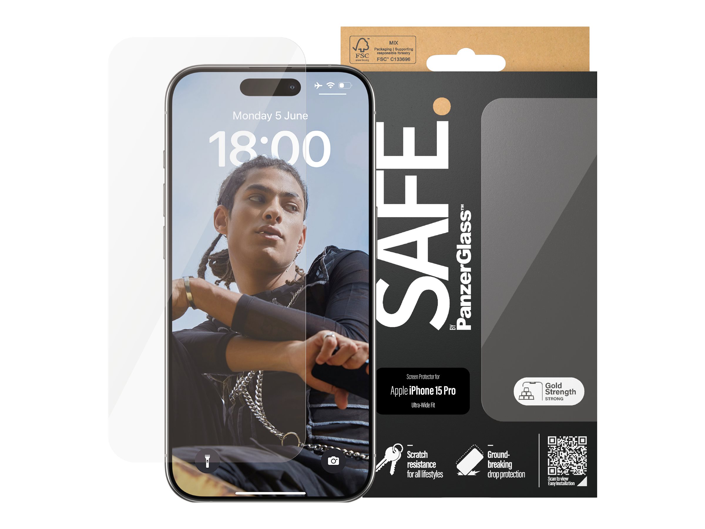 - PanzerGlass SAFE Screen protector Apple Iphone15 PRO Glass Clear Ultra-Wide Fit 418379