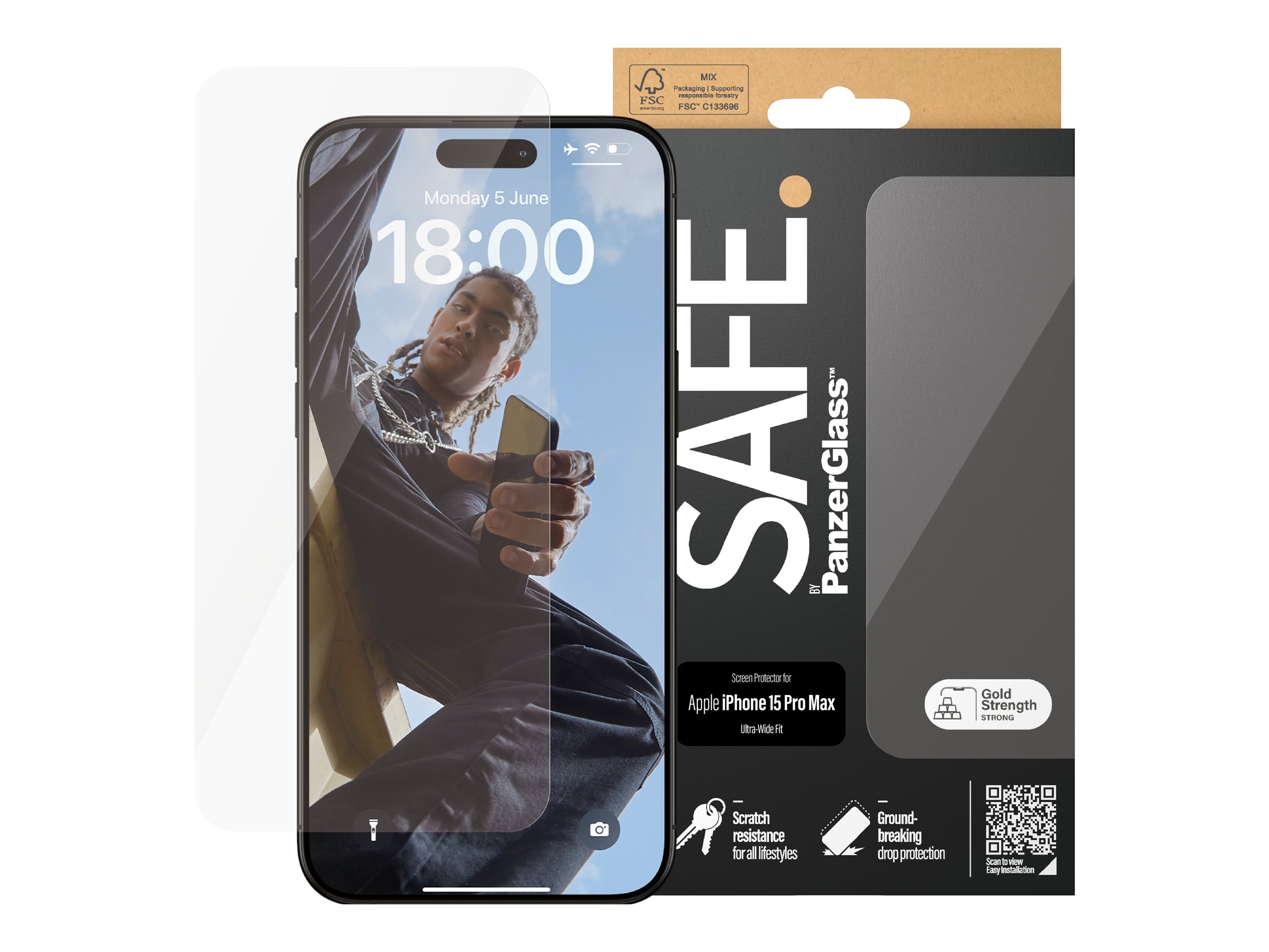 - PanzerGlass SAFE Screen protector Apple Iphone15 PRO MAX Glass Clear Ultra-Wide Fit 418382