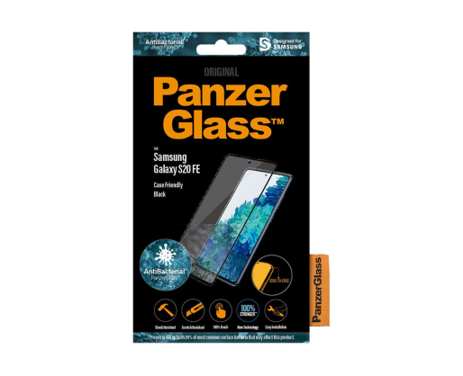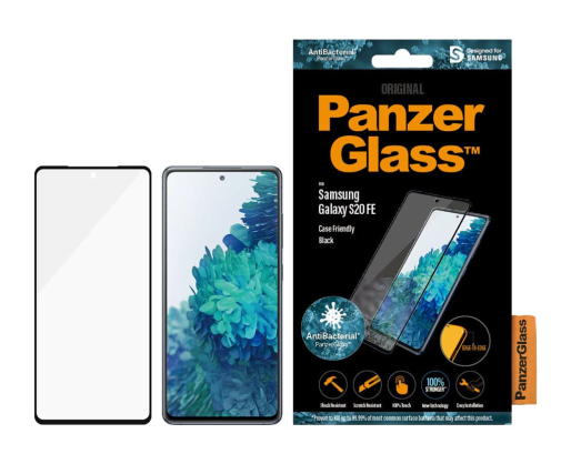 PanzerGlass | Samsung | Galaxy S20 FE CF | Glass | Black | Works with face recognition and is compatible with the in-screen fingerprint reader; Case Friendly | Clear Screen Protector 308221