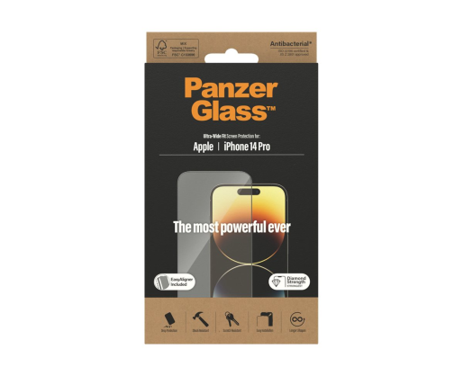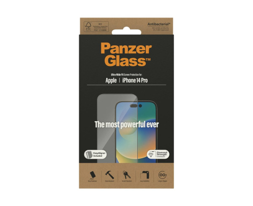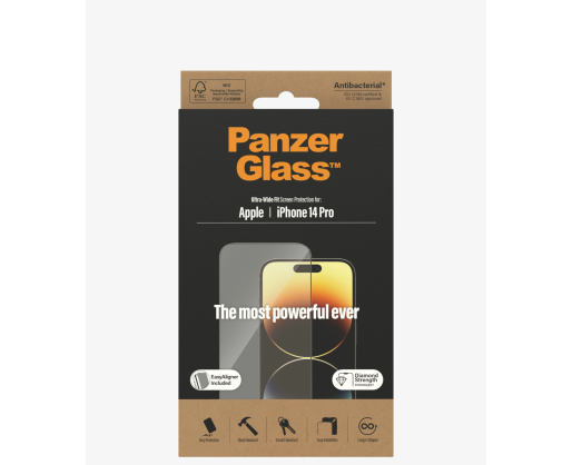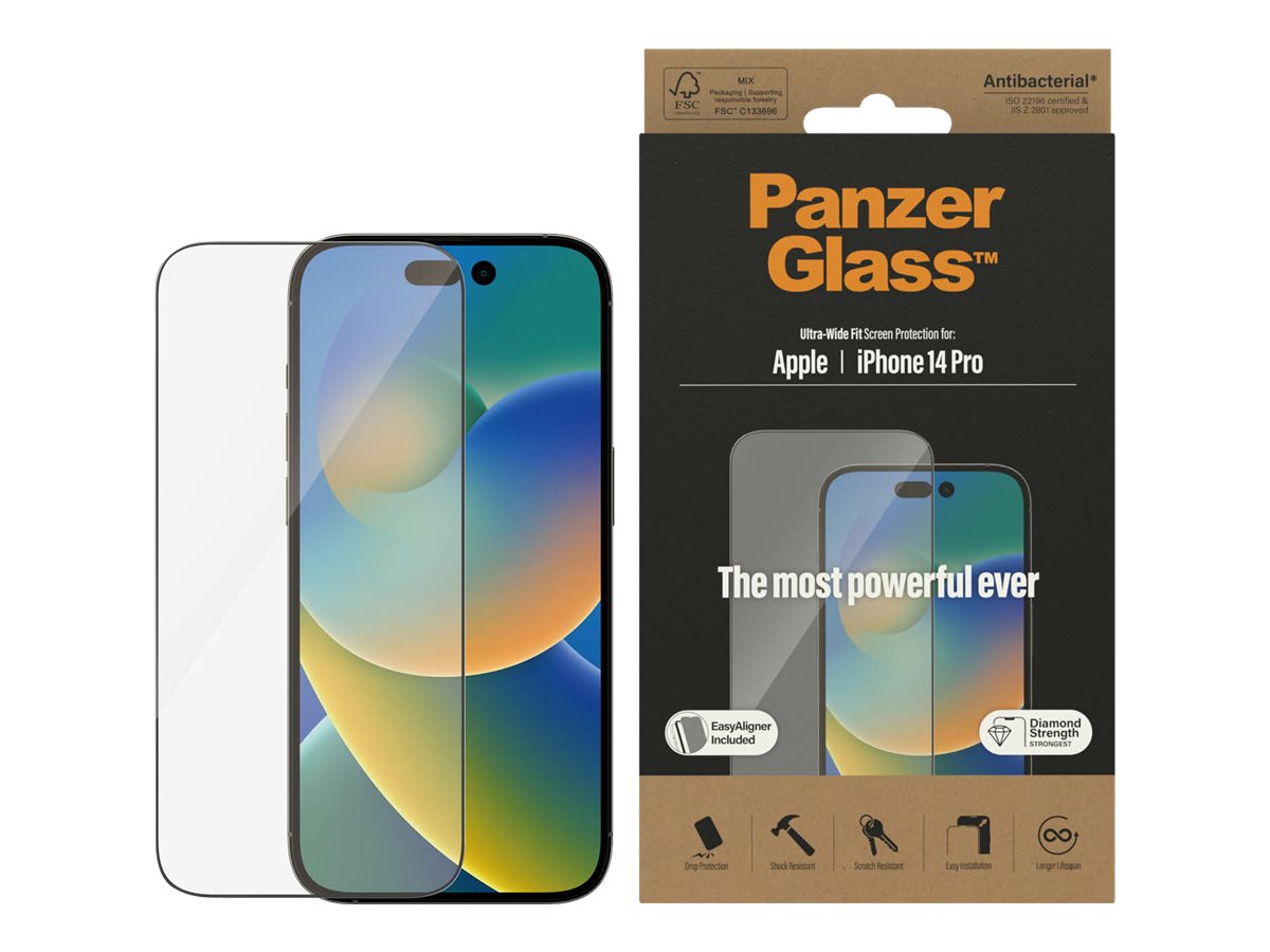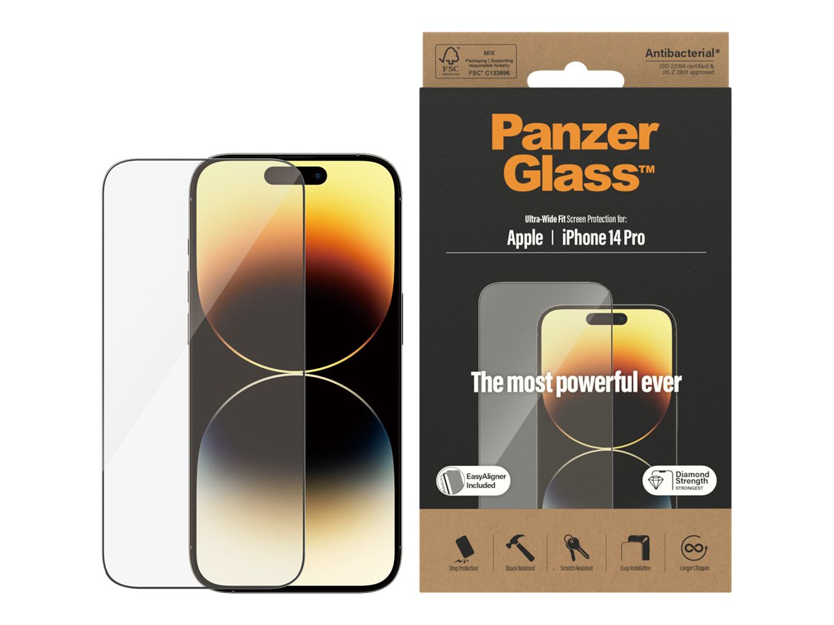 PanzerGlass | Screen protector | Apple | iPhone 14 Pro | Glass | Clear | Ultra-Wide Fit; Easy installation; Fingerprint resistant 375216