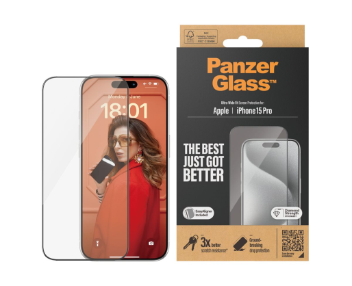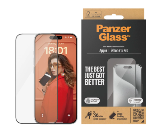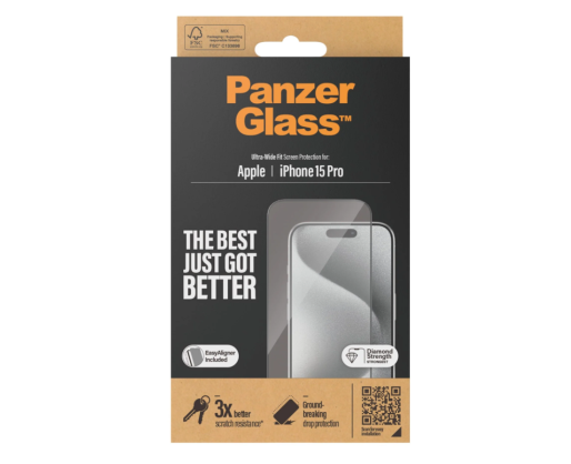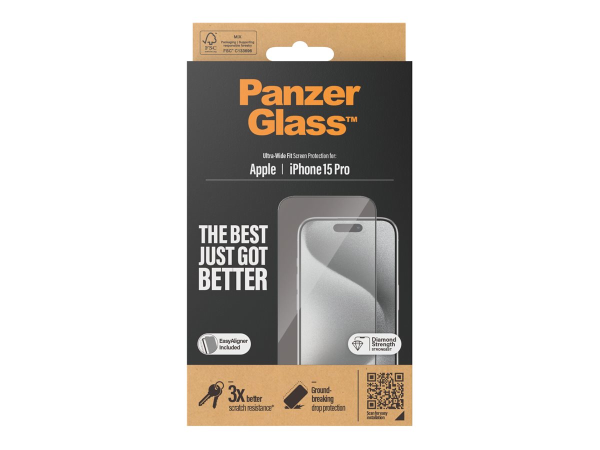 - PanzerGlass Screen protector Apple iPhone 15 Pro Glass Clear Ultra-Wide Fit Easy instal...