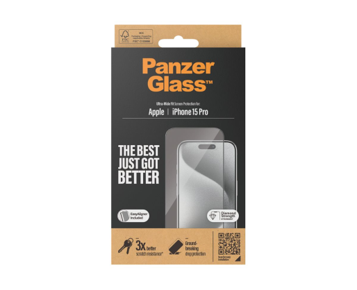 PanzerGlass Screen protector Apple iPhone 15 Pro Glass Clear Ultra-Wide Fit Easy installation; Fingerprint resistant; Anti-yellowing 409628