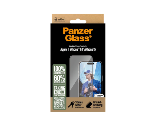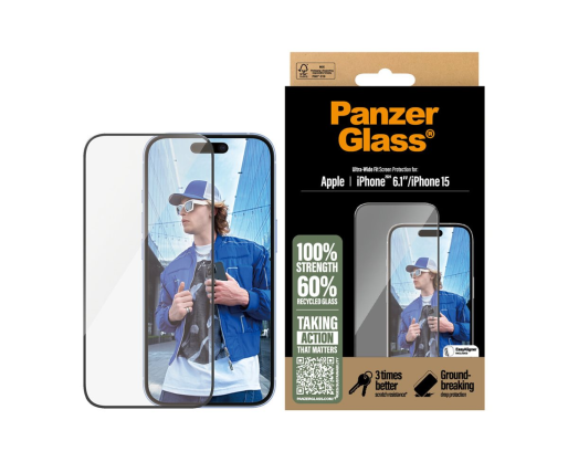 PanzerGlass Screen protector | Apple | iPhone 16/iPhone 15 | Glass | Transparent | Ultra-Wide Fit 446062