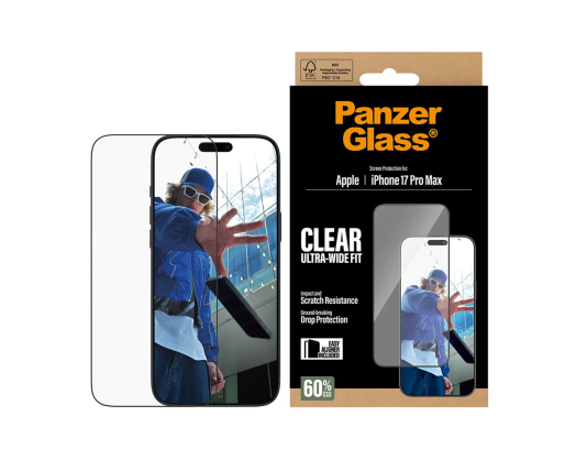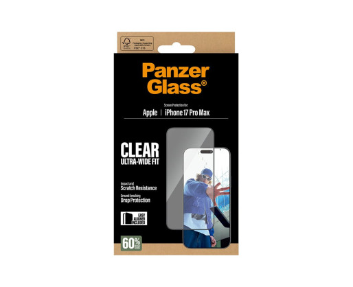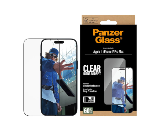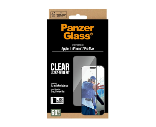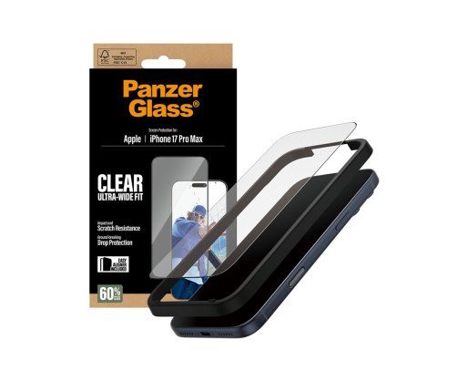 PanzerGlass Screen protector | Apple | iPhone 17 Pro Max | Glass | Transparent | Ultra-Wide Fit w. EasyAligner 485640
