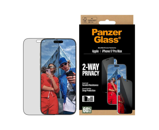 PanzerGlass Screen protector | Apple | iPhone 17 Pro Max | Glass | Transparent | Ultra-Wide Fit w. EasyAligner 485643