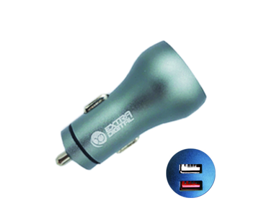 Kompaktiškas automobilinis kroviklis su dviem USB jungtimis. Greitas įkrovimas (Quick charge).Ypatybės:
