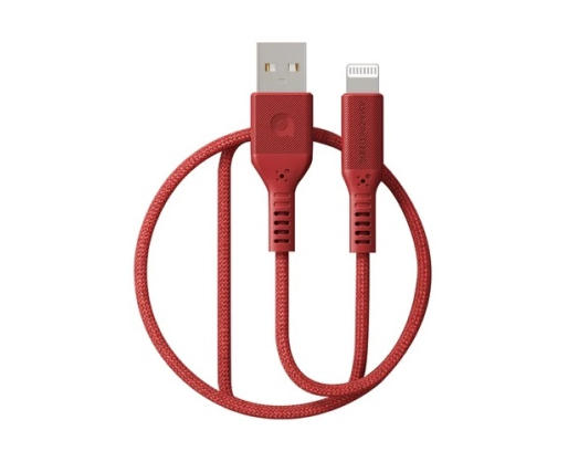 Ypač stiprus USB - Lightning kabelis, skirtas greitam įkrovimui ir duomenų perdavimui, raudonos spalvos, 1.2m.Ypatybės: