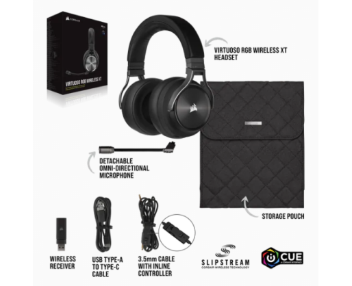 | Package content | VIRTUOSO RGB WIRELESS XT; USB wireless transmitter; USB charging cable, 1.8m; 3.5mm stereo cable with inline controller 1.5m; Storage pouch; Warranty Card |