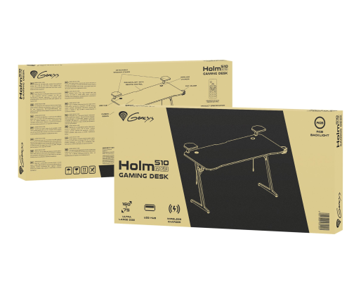 - Genesis Gaming Desk Holm 510 RGB Headphone holder, Cup holder, Speaker shelf, Organizer...