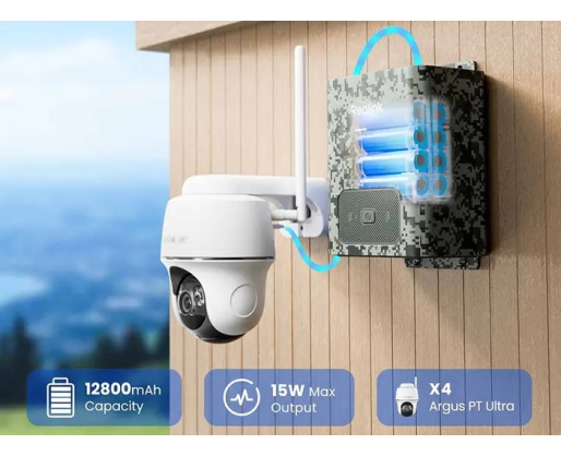 | Techniniai parametrai | Massive Power for Battery Cameras; Ultra-Low Temperature Charging; Compatible with Reolink Solar Panels |
